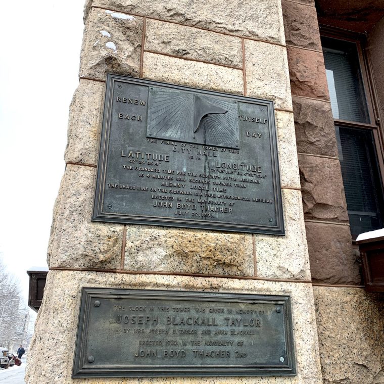 I had heard of John Boyd Thacher before I saw the upper plaque: there’s a nice state park in the NY Capital District named after him. He was mayor of Albany twice, in 1886-88 and 1896-97. His father, George Thacher, was mayor 1860-62, 1866-68, and 1870-74. His nephew, John Boyd Thacher II (see the lower plaque) was mayor 1926-41.
