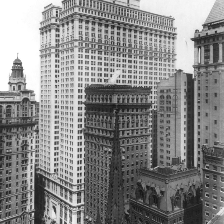 Office buildings of this type, meant to house vast numbers of clerks, were about twenty years old at the time. There were certainly commercial offices earlier than that, but they were generally smaller, simpler buildings. Of course, the further back in time you go, the simpler the buildings get: the 1850s law-office described in “Bartleby the Scrivener” didn’t have modern plumbing, or HVAC other than fireplaces and operable windows. New York commercial buildings of the mid-1800s had wood and brick super-structure, masonry foundations, maybe some stone veneer; largely wood interiors, with plaster finishes and maybe a little tile flooring. The doors and windows were wood. Plumbing was limited and simple. In short, constructing such a building meant hiring a mason and a carpenter, and then dealing with a few other details.