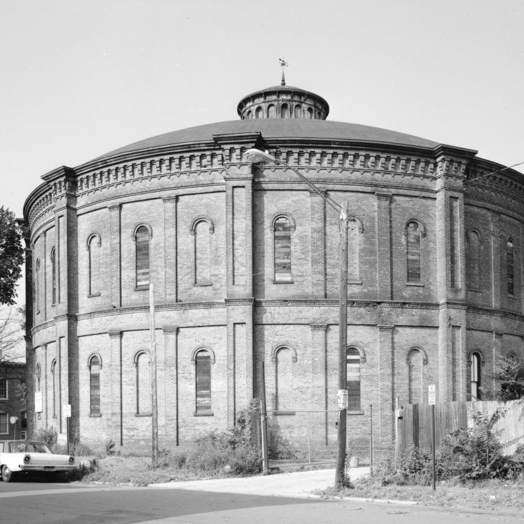 That odd round building in the photo above was the first time I encountered a structure that was a designed mix of wrought-iron and masonry. It’s the Gasholder House in Troy, New York. I was introduced to it when I was a student, not in an engineering class, but by a history professor, Tom Carroll. For some odd reason, the HAER survey for this building is not listed under “gasholder” in the HABS/HAER index.