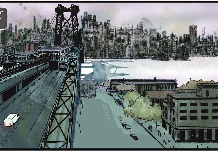 The Riddler comic is deliberately – in keeping with the character – making Gotham City look ugly. I guess it’s no surprise that we get a cameo of the Williamsburg Bridge, the least graceful suspension bridge in New York and maybe anywhere.