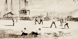 The Atlantics played at two fields in Brooklyn, but neither was anywhere near Clinton Street. The Excelsiors played in the 1850s at Carroll Park, which is – amazingly frustratingly – one block from Clinton Street. As best as I can read that fuzzy caption, it seems like the championship game was being played at the Excelsior grounds, so I’m going to stop this madness by saying that I believe whomever wrote “Clinton Street” was slightly wrong.