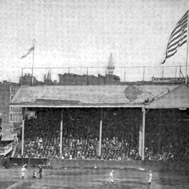 Since it’s described as having grandstands and clubhouses, those streets may have been mapped but not yet opened, and so were theoretical until the park closed in 1880. Here’s an engraving of the Atlantics playing the Cincinnati Red Stockings in 1870: