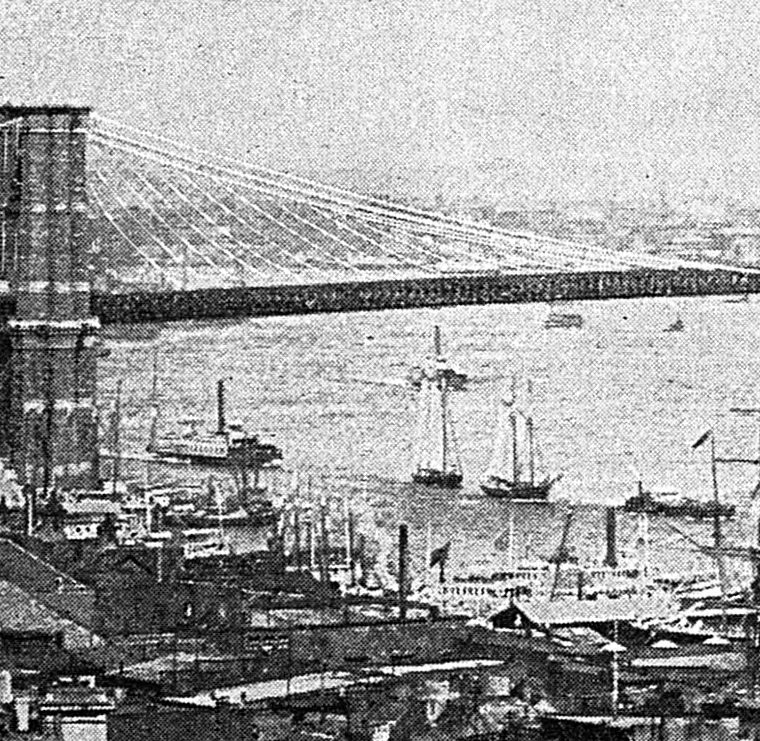 The list of ferries includes a note about a ferry from Fulton Street in Brooklyn to the new Jersey railroad terminals that is described as being “near the Suspension Bridge.” There was, in 1893, only one suspension bridge in New York, as opposed to the eight we have now.