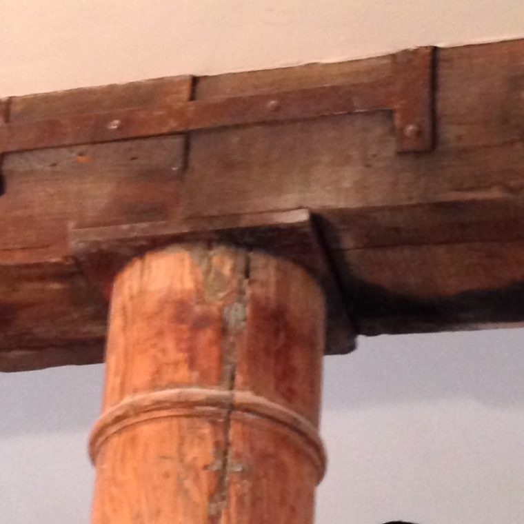This space is now an apartment that few can afford, and the renovation going on when I took that picture was covering up most of the structure. But the wood columns remained exposed and I keep looking at that molding 8 or 10 inches down from the girder. Someone felt that the upper-floor columns in a warehouse, unlikely to be visited by anyone who spent much of their time thinking about architectural aesthetics, needed this faint echo of a classical order that marks the base of where an ornamental column capital would start.