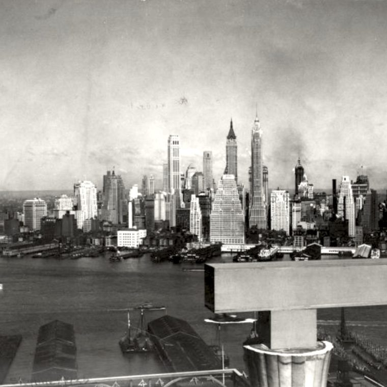 From the Wurts Brothers, a photo titled “Brooklyn – 100 Henry Street – Clark Street” that is pretty clearly a skyline view of lower Manhattan: