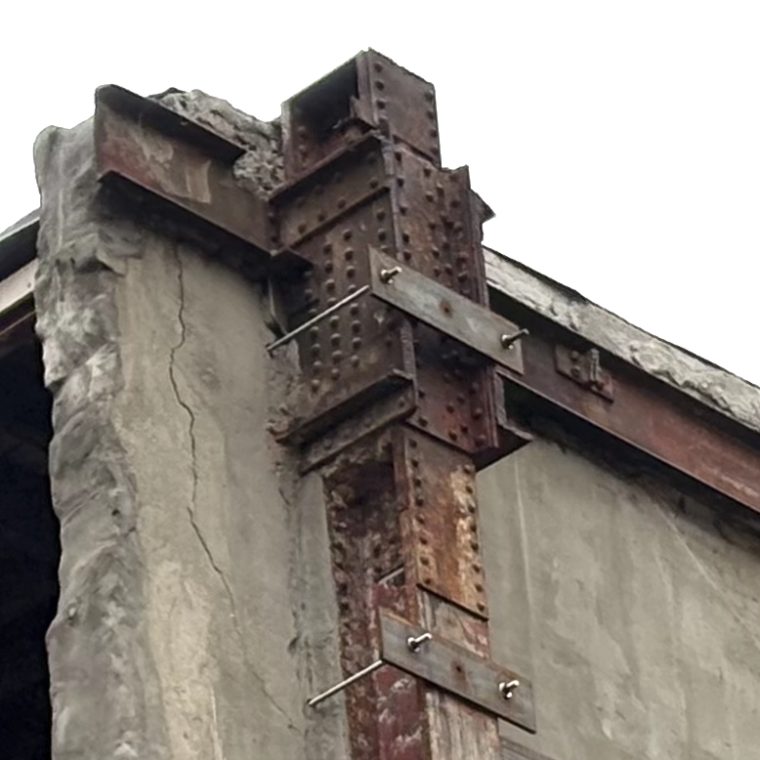 As for why the steel is fastened to the building next door, I assume that’s got something to do with the logistics and sequencing of the buildings being demolished.