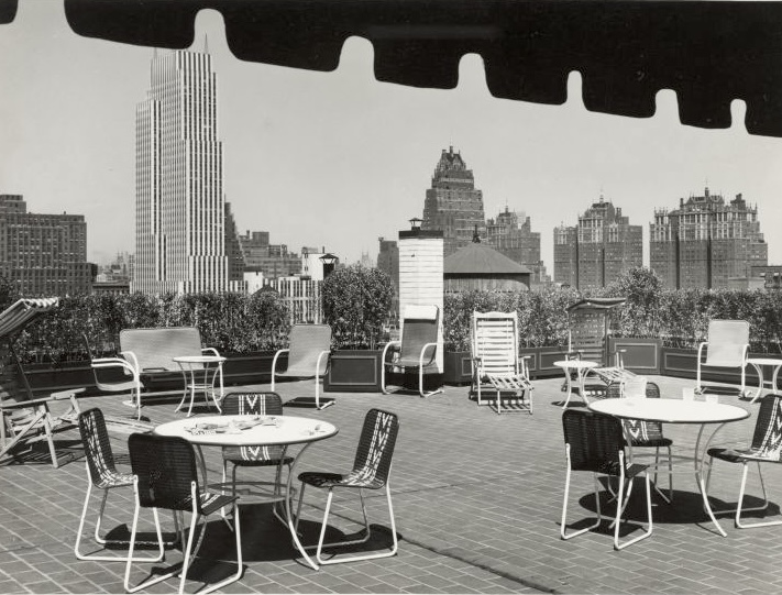 But, yeah, the title: “General View – Manhattan – Aerial View.” Maybe I’m being too literal-minded, which is always a concern among engineers, but if you’ve got lawn chairs in front of you, your photo is not an aerial view. Aerial views are what used to be called “birds’ eye views”: they are the view from the air, not from a perch big enough to be a recreation terrace.